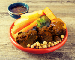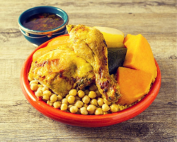 Mssemen coupées en lamelles, lentilles, poulet et plein d’épices dont nous gardons le secret !