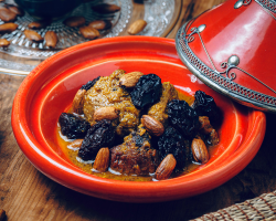 Du bon gigot d’agneau ! Des pruneaux confis, des amandes grillées et graines de sésame !